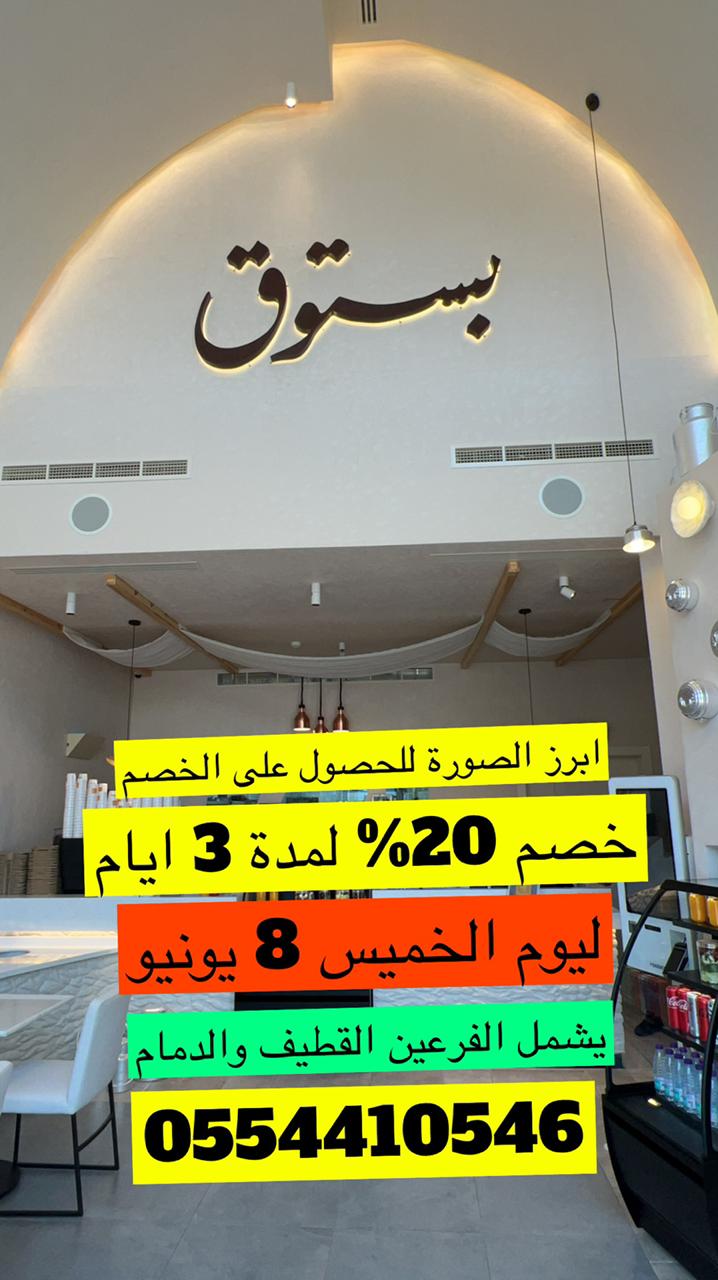 بمناسبة افتتاح الفرع الجديد في الدمام لمطعم ”بستوق“ خصم 20 ٪ لحتى 8 يونيو