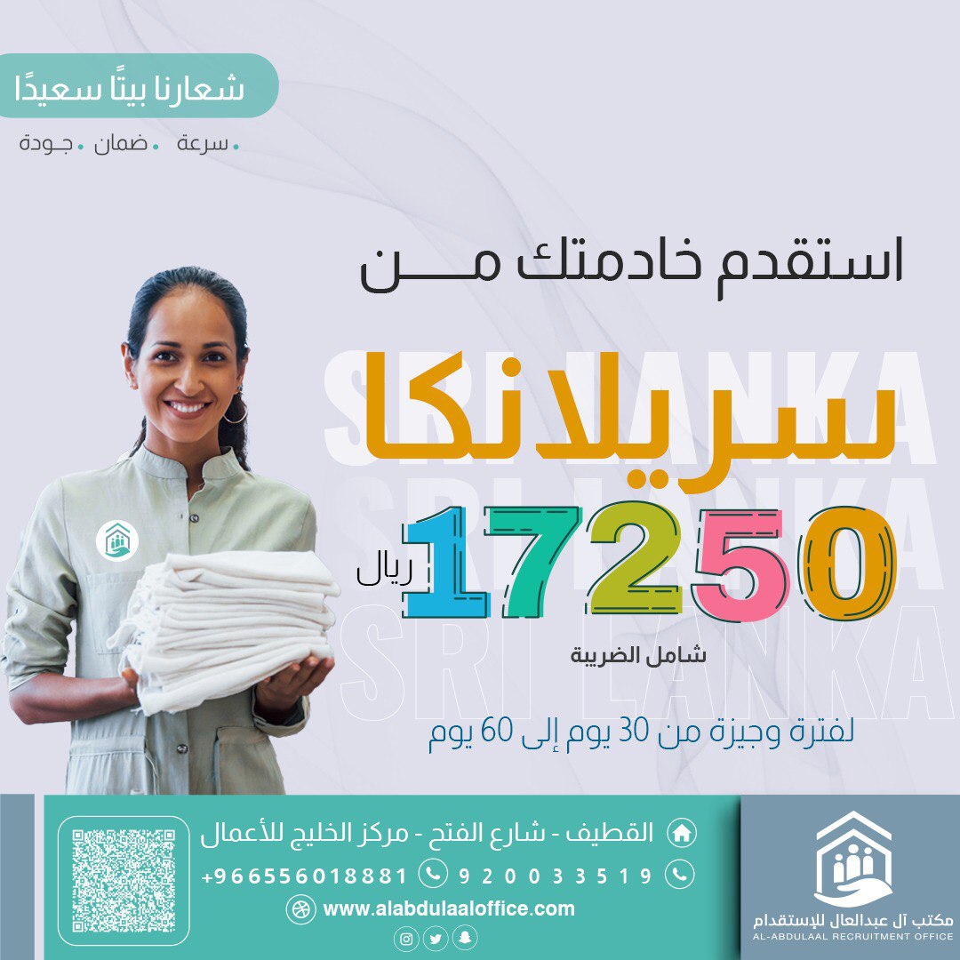 استقدم أفضل العمالة الفلبينية والكينية والسيرلانكية من مكتب آل عبدالعال للاستقدام