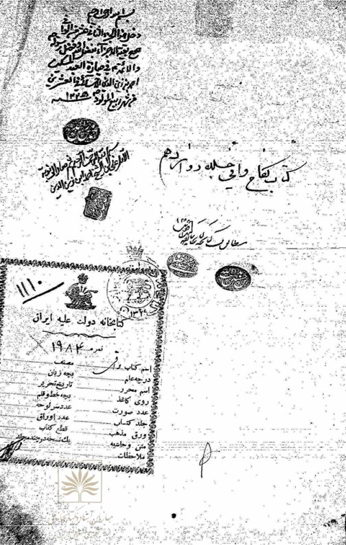 مكان الحفظ: المكتبة الوطنية في إيران، رقم الحفظ: 2008 [2] .