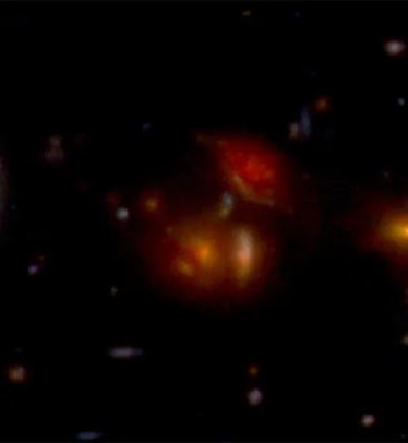 اكتشف تلسكوب JWST مجرات تشكلت في بواكير نشأت الكون أكثر مما توقعه أي أحد: يبدو أن مجرة عظم الكلب هي في الأساس مجرتان صغيرتان في طور عملية الاندماج. لذلك، بعد 400 مليون سنة من الانفجار العظيم، شكَّل الكون بالفعل نجومًا اندمجت في مجرات، واثنتان من تلك المجرات اندمجتا معًا.