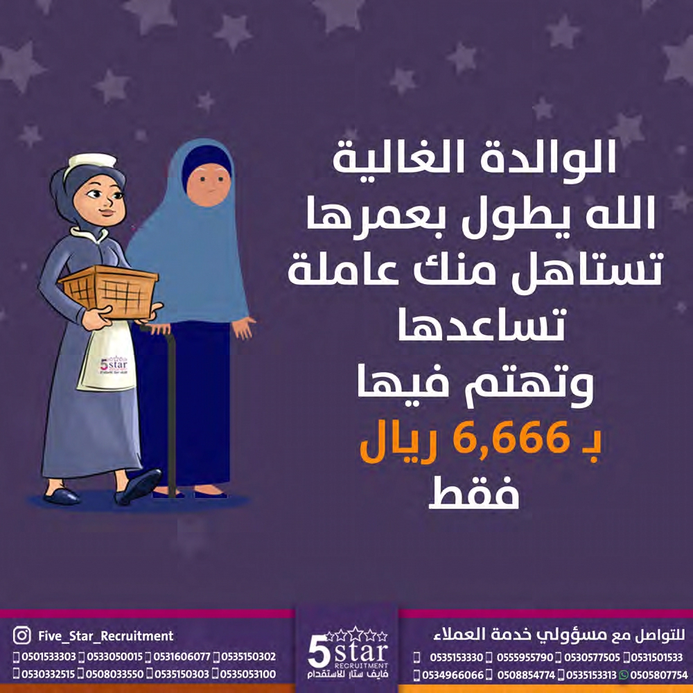 💠الوالدة الغالية الله يطول بعمرها تستاهل منك عاملة تساعدها وتهتم فيها ب 6,666 ريال فقط