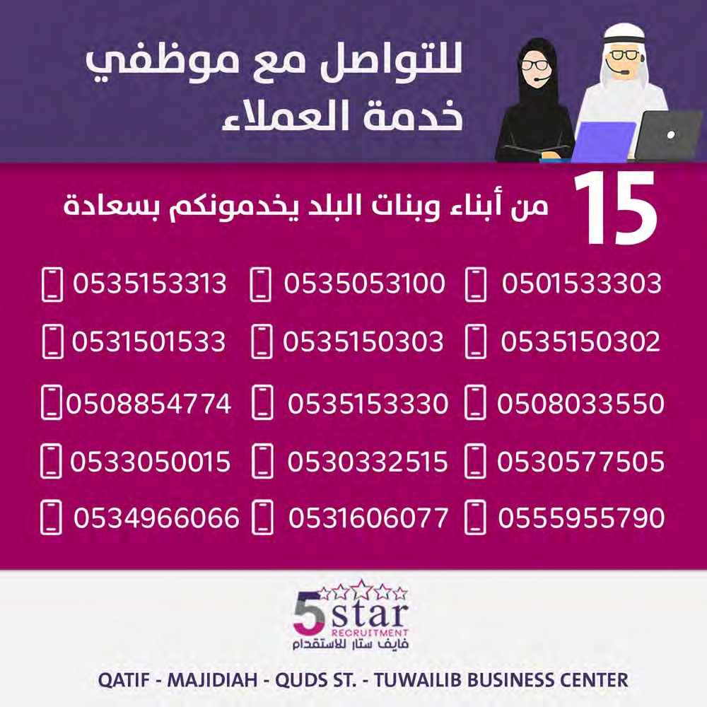 إضافة إلى 14 من مسؤولي خدمة العملاء حاضرون للرد على مكالماتكم ورسائلكم