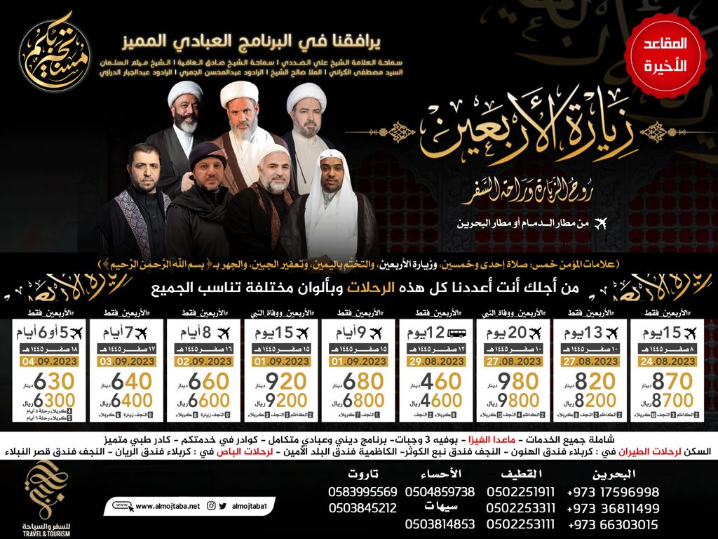 سارع بحجز مقعدك لزيارة الحسين (ع) مع المجتبى للسفر والسياحة .. المقاعد الأخيرة!