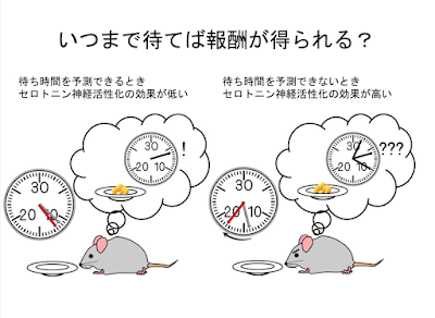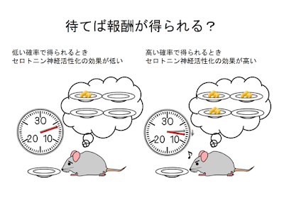يُعتبر تأثير المعدِّل العصبي [1]  neuromodulator السيروتونيني على قدرة الفئران على التحلي بالصبر عند انتظار المكافأة هو من صميم الدراسة [2]  التي نُشرت في مجلة Nature Communications. قام المؤلفان، الدكتور كاتسوهيكو ميازاكي Katsuhiko Miyazaki والدكتور كايوكو ميازاكي Kayoko Miyazaki، بتحليل كيف تتصرف الفئران تحت تأثير السيروتونين، كجانب من دراسة أجريت في وحدة الحوسبة العصبية في معهد أوكيناوا للعلوم والتكنولوجيا.
