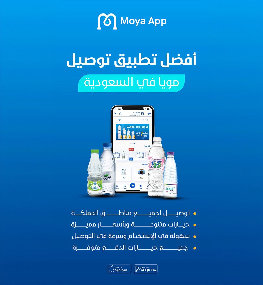 ”مويا آب“ يوفر لك جميع منتجات المياه والعلامات مثل نوفا، بيرين، نقي، مانا، صفا مكة وأكثر.