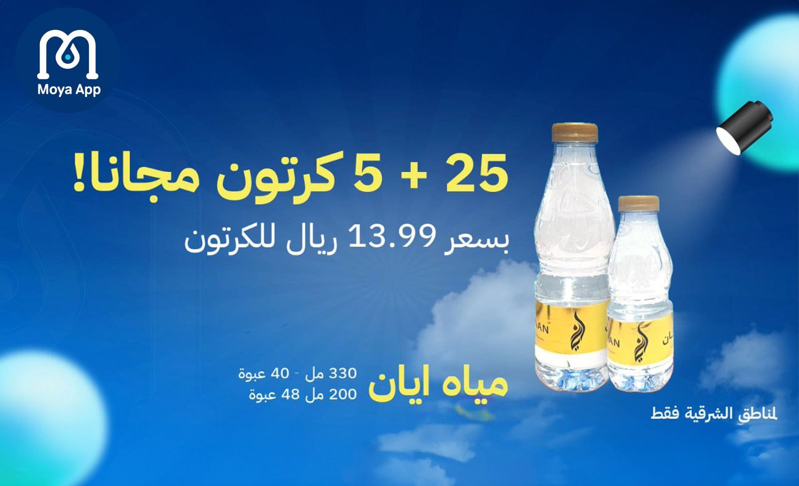 •  أيان 200 مل 48 عبوة، 25 + 5 كراتين مجانا بسعر 13,99 ريال للكرتون!