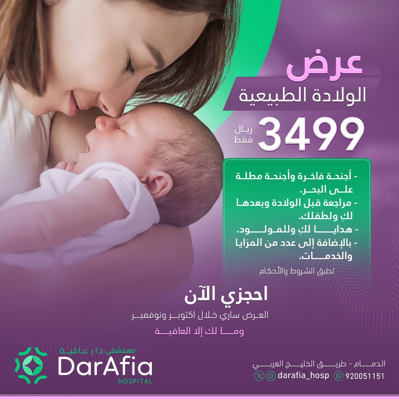 استقبل مستشفى دار عافية بمدينة الدمام، المولود الأول بالمستشفى، في حالة ولادة مبكرة، استطاع من خلالها الطاقم الطبي التعامل مع الحالة بمهنية عالية مع الحرص على أن تكون الولادة طبيعية.