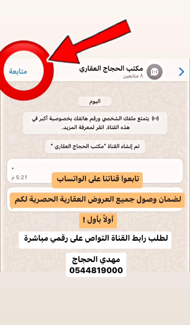العروض العقارية صارت توصلك أسرع وأوضح مع قناة مكتب الحجاج العقاري على "الواتس أب "