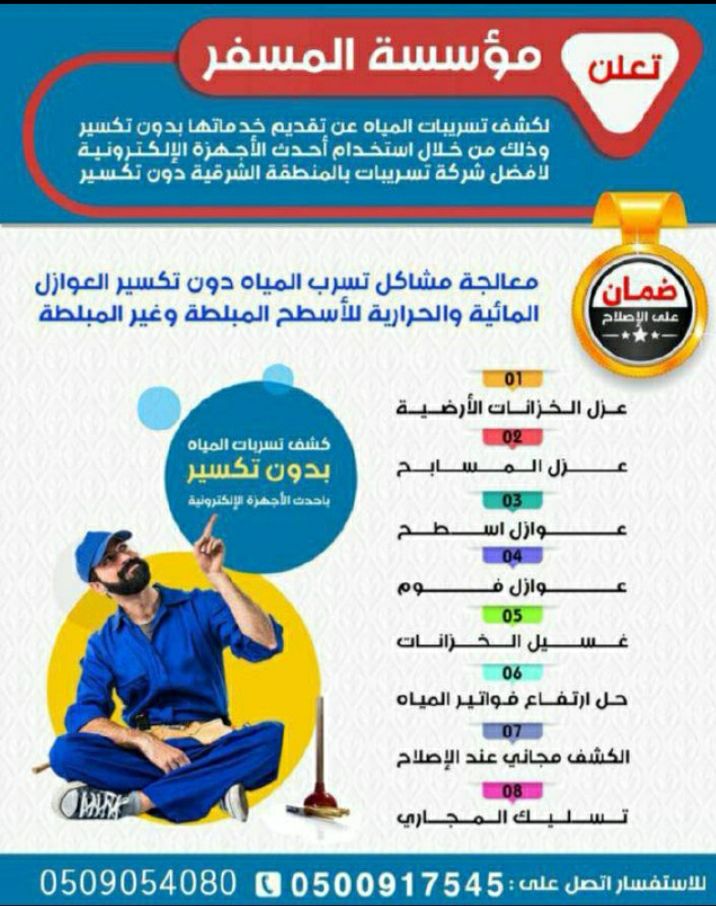 تعلن مؤسسة المسفر لكشف تسريبات المياه عن تقديم خدماتها بدون تكسير.