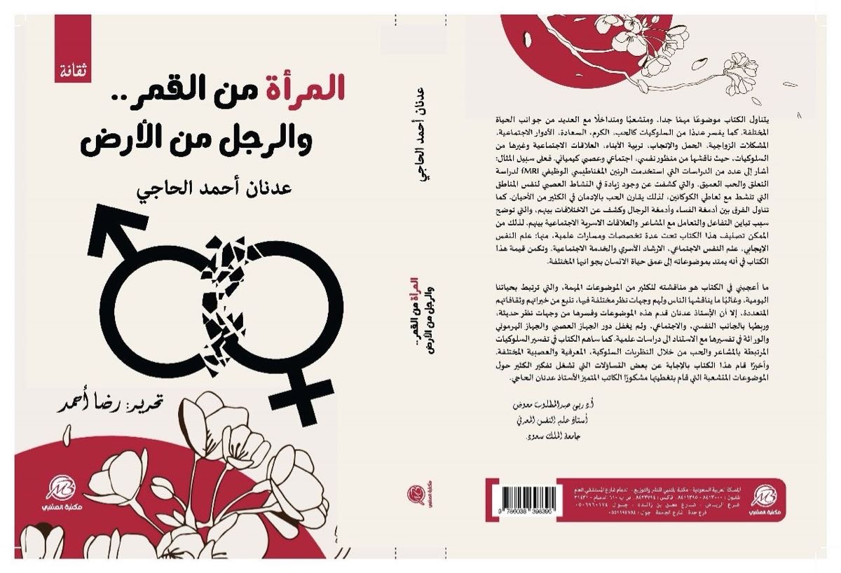 صدر للكاتب عدنان أحمد الحاجي كتاب: «المرأة من القمر والرجل من الأرض». يضمن أربعة فصول متنوعة غطت 66 دراسة وتقريرًا علميًا، معظمها نشر حديثًا في دوريات علمية، روعيت فيها قيمة ورصانة الدراسات من الناحية العلمية وحاجة المجتمع وحتى أصحاب التخصص في هذا المجال.