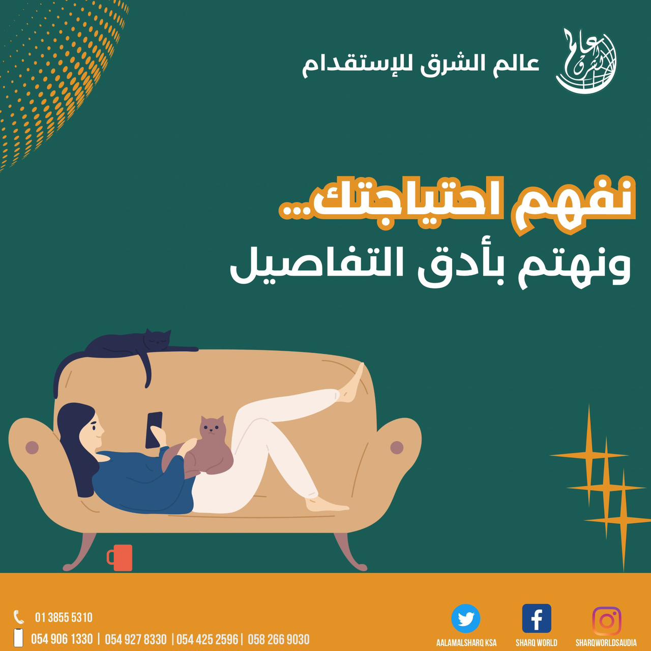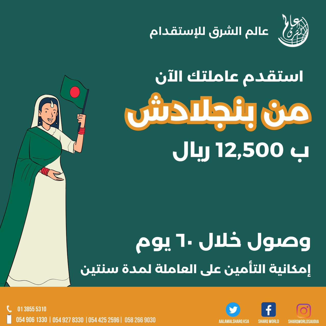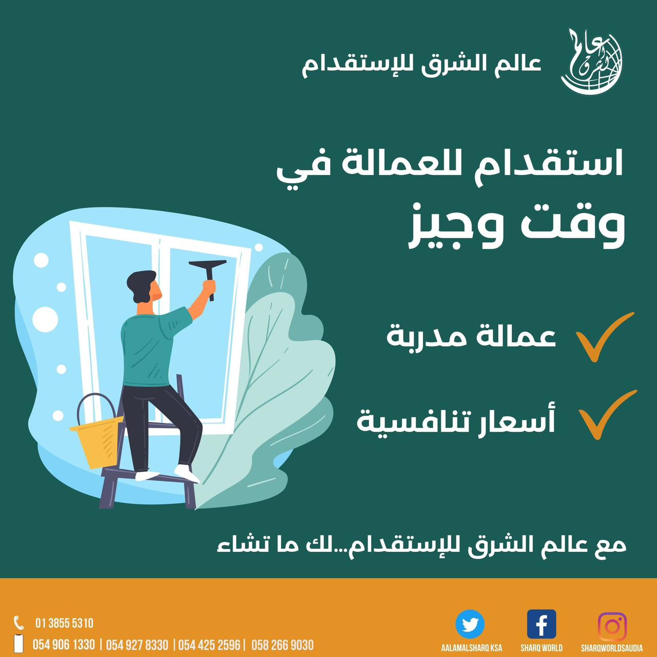 ”عالم الشرق للإستقدام“ مكتب إستقدام سعودي يعمل في إستقدام العمالة المنزلية والمهنية مرخص من قِبل وزارة الموارد البشرية والتنمية الإجتماعية ترخيص رقم «3804449».