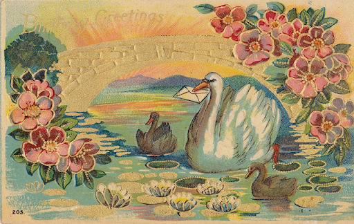 الصورة: أصبحت فكرة الشاعر والمؤلف جيفري تشوسر [الشاعر الإنجليزي الذي عاش في القرن الرابع عشر[6] ] بأن الطيور تختار أزواجها في يوم عيد الحب جزءًا من رمزية هذا العيد، كما هو موضح في بطاقة عيد الحب الفيكتورية هذه.