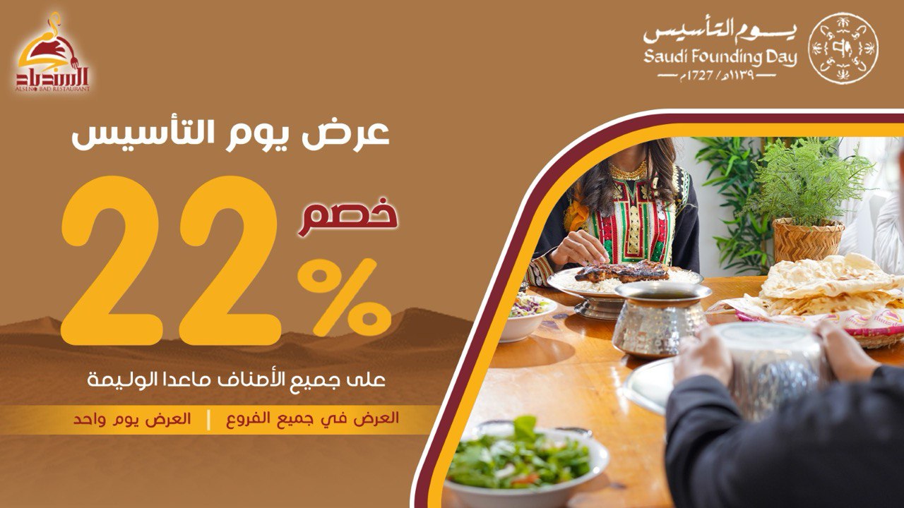 خصم 22% على جميع الأصناف في مطاعم السندباد