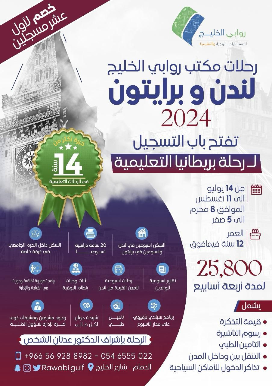 تفتح باب التسجيل لـ رحلة بريطانيا التعليمية
