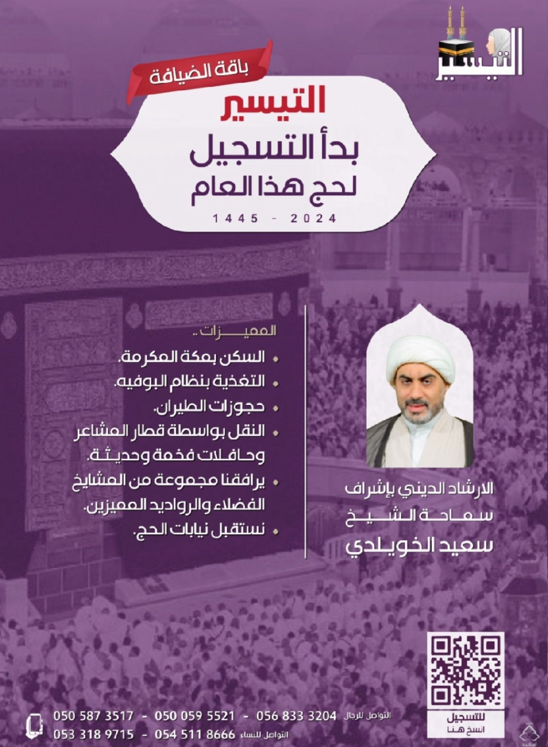 تعلن حملة التيسير لحج هذا العام 1445 هـ  عن عرضها الخاص، ولفترة محدودة بـ 14750 ريال بدلا من 15750 ريال