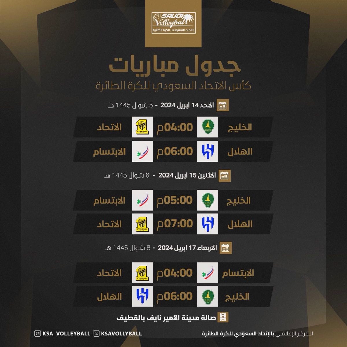 هذا الموسم الرياضي سوف يشهد نسخة استثنائية ”للكرة الطائرة“ بمشاركة الفرق الرياضية المتأهلة لكأس الاتحاد السعودي للكرة الطائرة وذلك للمرحلة الختامية: الهلال، الاتحاد، الابتسام، والخليج.