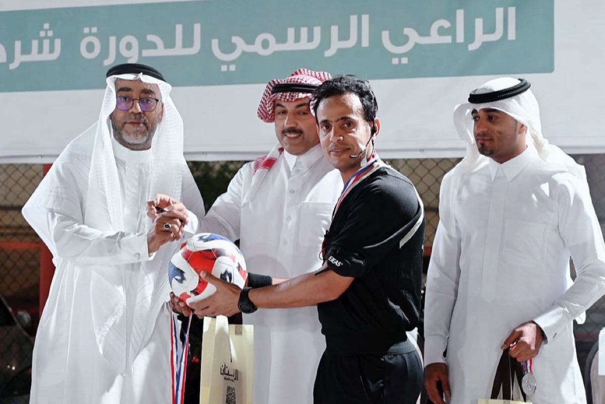 سلم كأس البطولة بالإنابة المهندس علي المطرود وكيل رئيس البلدية للخدمات والمهندس عبد المحسن الغريافي رئيس بلدية وسط القطيف.