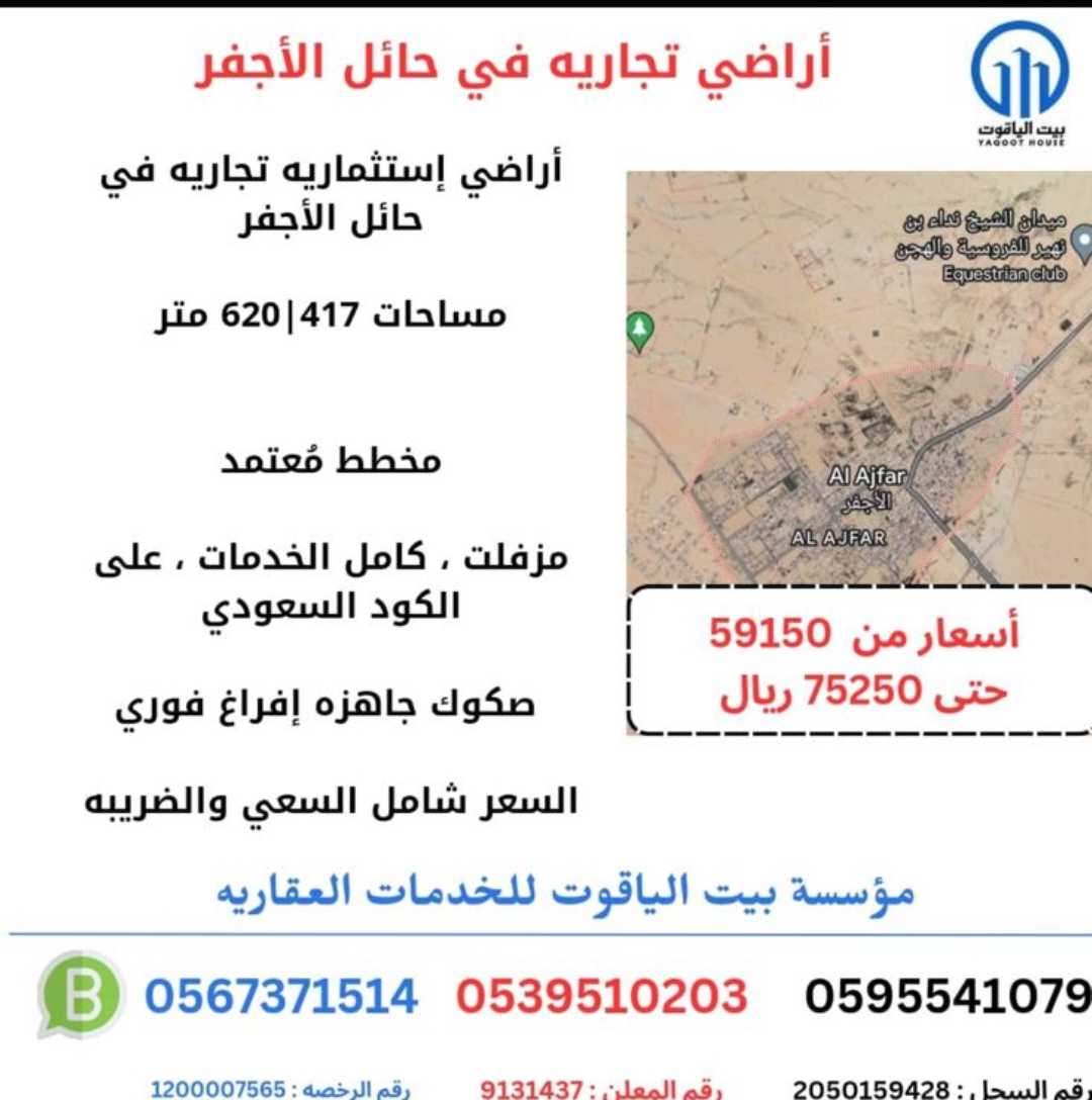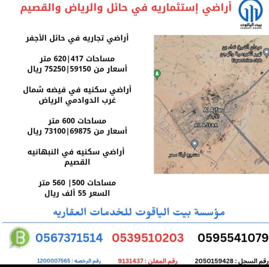 • أراضي سكنية وتجارية مصرحة