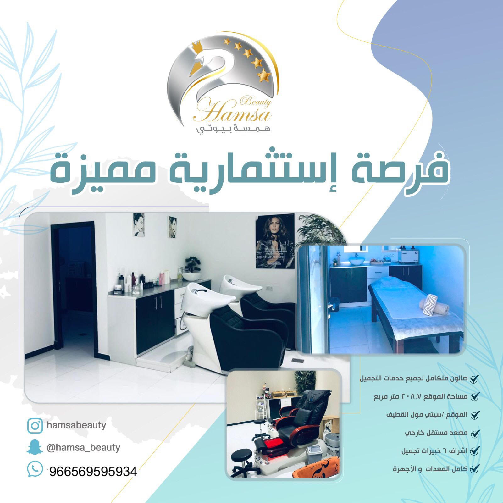صالون نسائي متكامل بجميع خدمات التجميل النسائي الحديثة بمساحة 208,7 متر مربع في أكبر وأرقى مجمع تسوق في القطيف ”القطيف سيتي مول“ حيث يقع هذا الصالون في ساحة المطاعم والالعاب المكتظة بالمتسوقين وله مصعد من المواقف يصل إلى باب الصالون. ويتضمن الصالون جميع الخدمات اللازمة للعناية بالجسم والبشرة والشعر بالإضافة إلى خدمات التجميل المتكاملة والمساج وبه مكان مميز يصلح لفئة كبار الشخصيات ويعمل الصالون تحت اشراف 6 خبيرات تجميل بأرقى المعايير المهنية وكامل معدات وأجهزة التجميل والعناية والتعقيم.