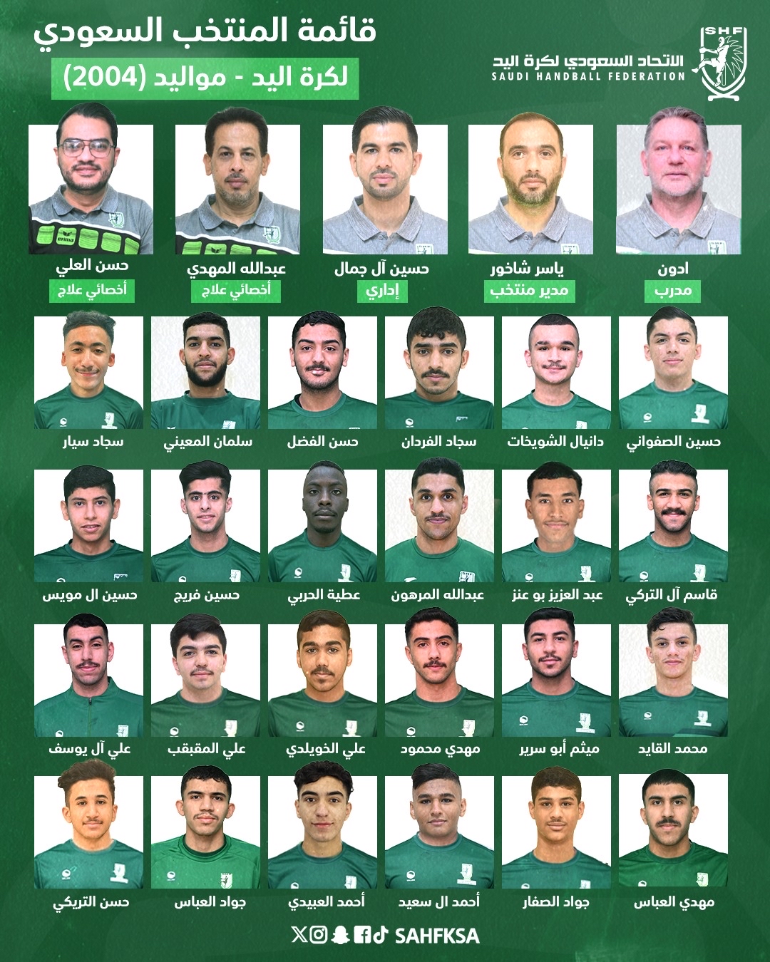 24 لاعبًا في قائمة شباب أخضر اليد استعدادًا للبطولة الآسيوية 2024 م