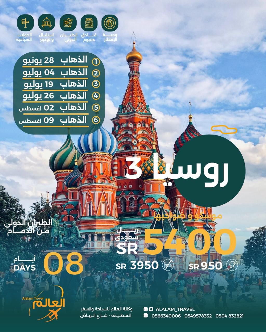 رحلات روسيا واوروبا وتركيا والبوسنة وتايلند واندونيسيا مع العالم للسياحة والسفر