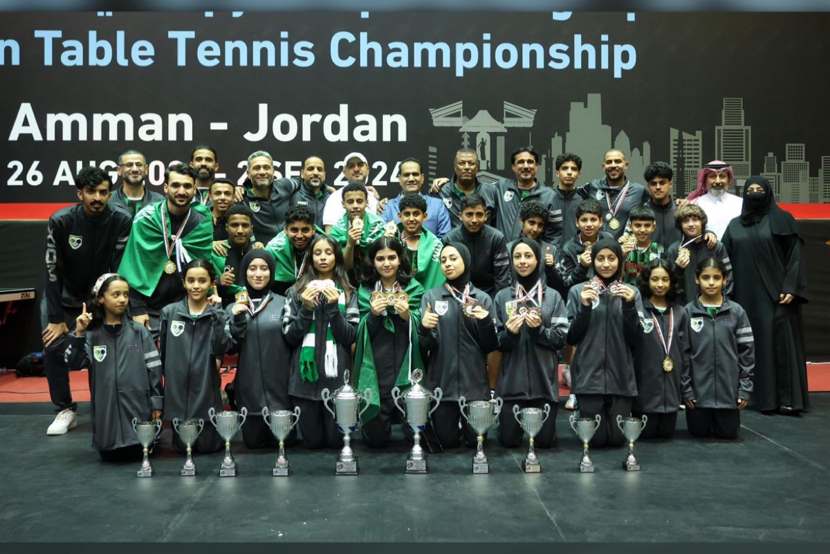 حققت بعثة المنتخب السعودي لكرة الطاولة برئاسة الدكتور عبدالله البار إنجازًا رياضيًا كبيرًا خلال مشاركتها في بطولة غرب آسيا في الأردن خلال الفترة ”26 - 31 اغسطس 2024“، حيث حصلت على 17 ميدالية متنوعة، تشمل 8 ميداليات ذهبية، وفضيتين، و 7 ميداليات برونزية، في حصيلة تعد الأكبر على مدار تاريخ إقامة هذه البطولة، التي شهدت مشاركة 220 لاعباً ولاعبة من 12 دولة، تنافسوا في كافة الفئات العمرية، بما في ذلك الرجال، السيدات، الشباب، الشابات، الناشئين، الناشئات، والأشبال.