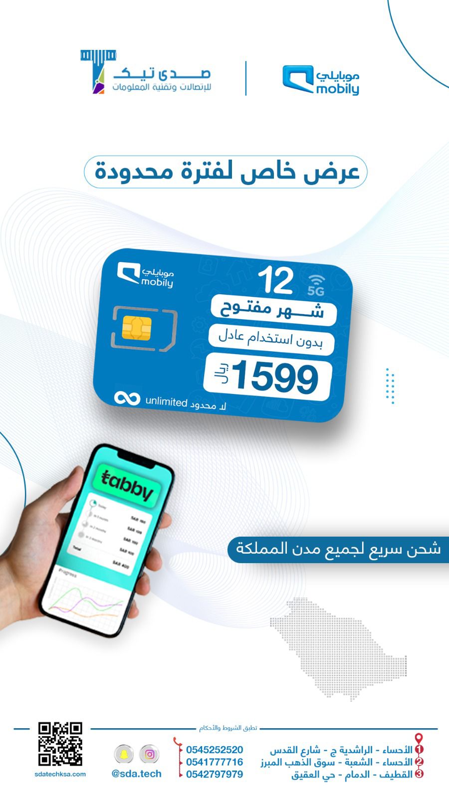 ”صدى تيك“ متجر متخصص في شرايح الإنترنت ومعتمدين من الشركات الكبرى في المملكة شركات «سوا، موبايلي، زين» نتميز في تقديم أفضل العروض على شرايح الانترنت وتقديم افضل عروض اكسسورت الجوال الأصلية ب ضمان 24 شهر