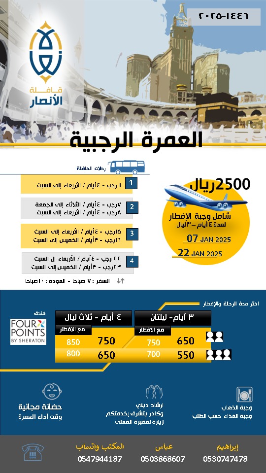 قافلة الأنصار تقدم لكم باقة رحلات العمرة الرجبية لعام 1446 /2025