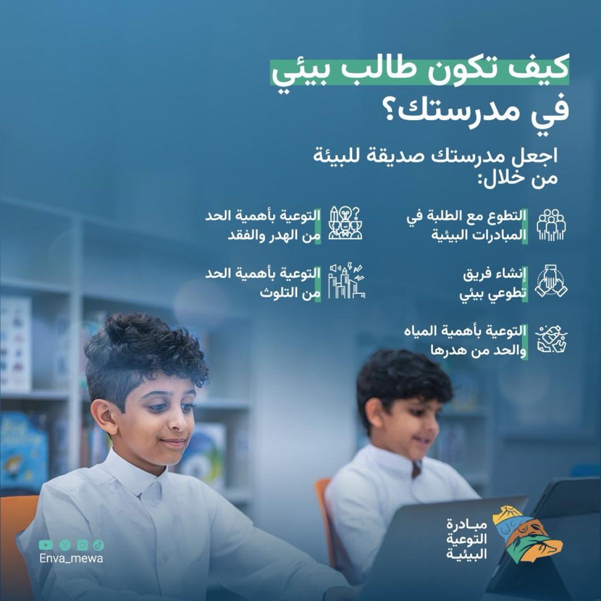 وتهدف المبادرة إلى غرس قيم الحفاظ على البيئة لدى الطلبة، وتحفيزهم ليكونوا قدوة في السلوك البيئي الإيجابي داخل مدارسهم ومجتمعاتهم.