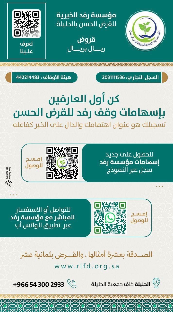 مؤسسة رفد الخيرية بوابة خير ومشروع إنساني ووطني