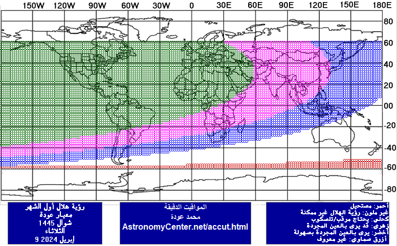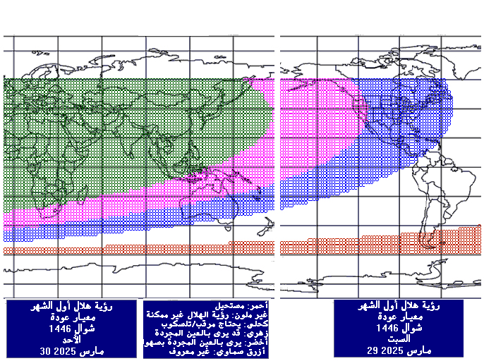 غرة شهر شوال: الأحد [7]  «بسبب الاشتراك في الليل مع بلد الرؤية ”طوكيو“ وفق الخريطة في الأسفل»