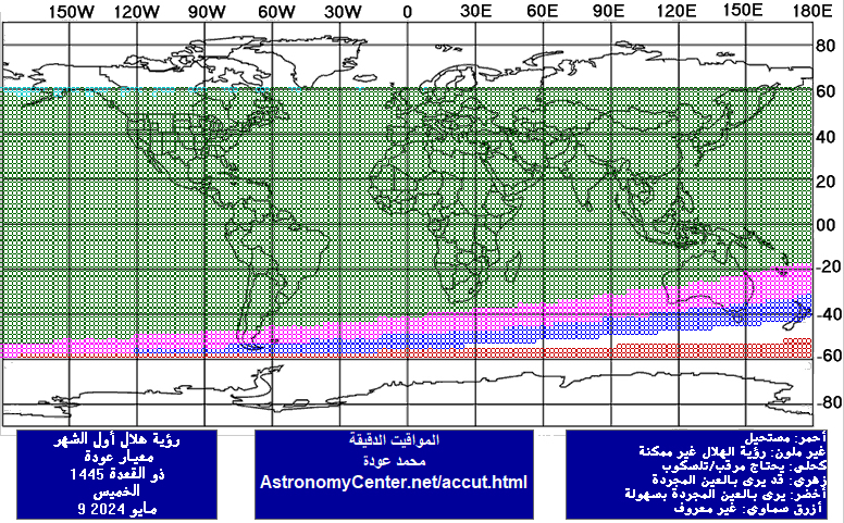 غرة شهر ذي القعدة 1445: الجمعة 10/مايو/2024 [6]  «بالرؤية وفق الخريطة في الأسفل».