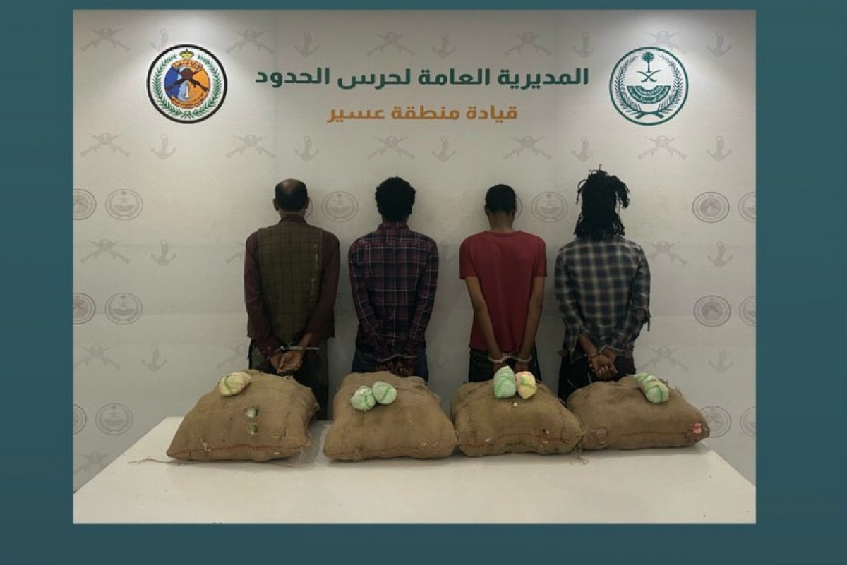وفي عملية نوعية منفصلة، ضبطت دوريات حرس الحدود بمنطقة عسير أربعة مخالفين لنظام أمن الحدود، أثناء محاولتهم تهريب «80» كيلوجرامًا من نبات القات المخدر، حيث جرى توقيفهم واتخاذ الإجراءات النظامية بحقهم.