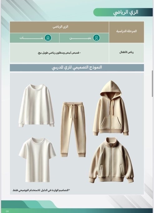 اعتمدت وزارة التعليم الزي المدرسي الوطني السعودي والزي الرياضي لطلاب وطالبات المراحل الدراسية المختلفة في المدارس الحكومية، وذلك في إطار سعيها لتعزيز الهوية الوطنية والمظهر اللائق للطلبة.