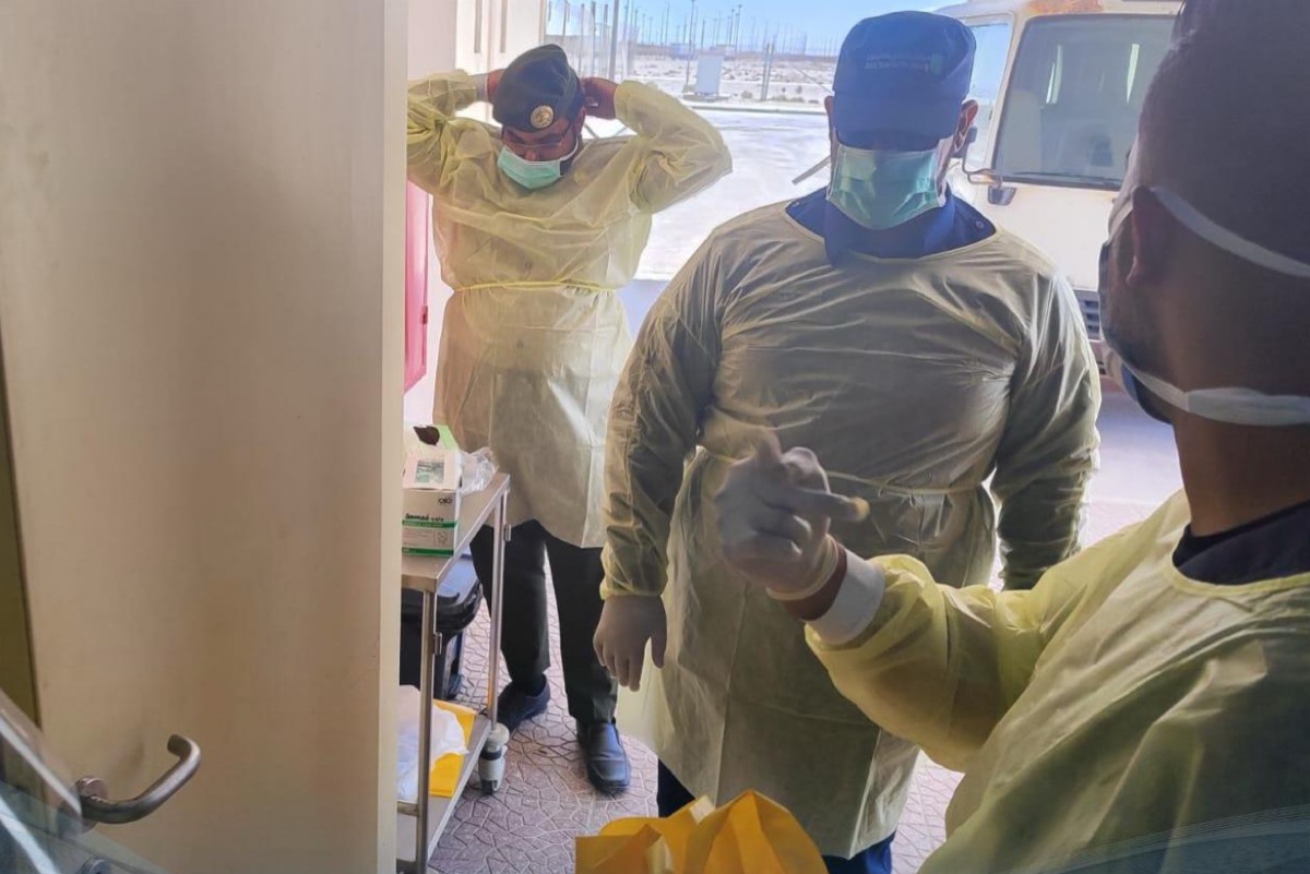 وتم خلال الفرضية محاكاة استقبال حالة اشتباه إصابة بمرض معدٍ، حيث تم تطبيق كافة الإجراءات الاحترازية والبروتوكولات الصحية المعتمدة في مثل هذه الحالات، بدءًا من عملية الفرز وحتى التعامل مع الحالة المشتبه بها.