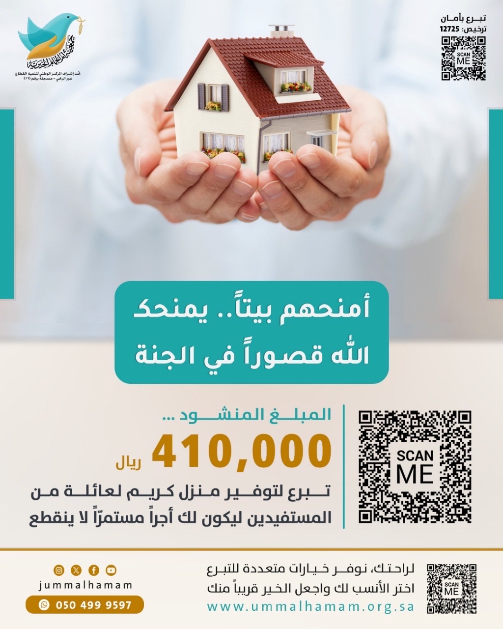 ”خيرية أم الحمام“ تطلق حملة لشراء منزل لأسرة متعففة بـ 410 آلاف ريال