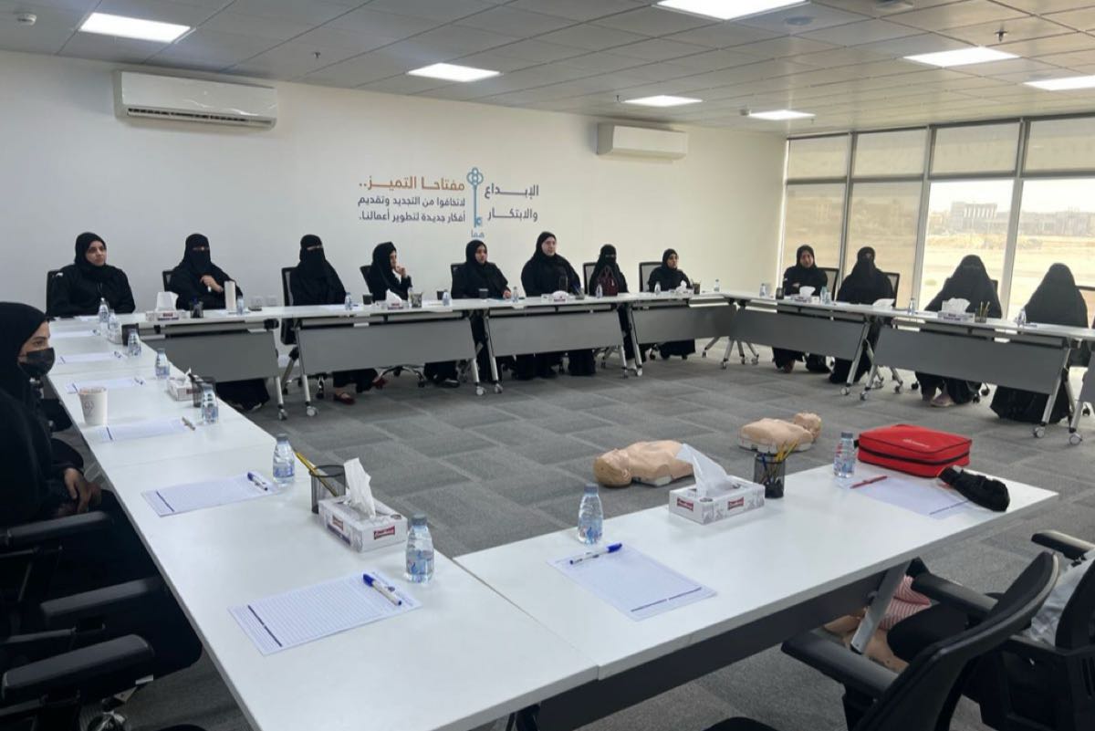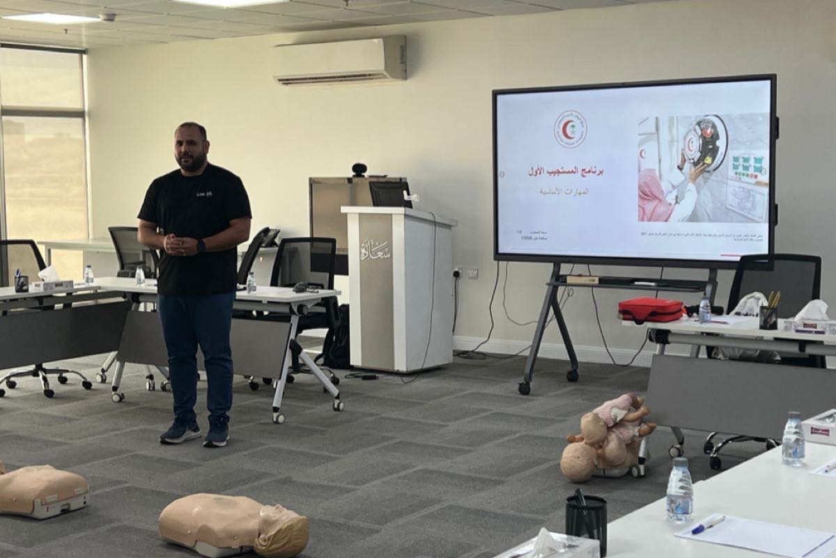 وانطلقت الورشة التدريبية لمدة يومين، حيث جاءت معتمدة من قبل هيئة الهلال الأحمر السعودي.