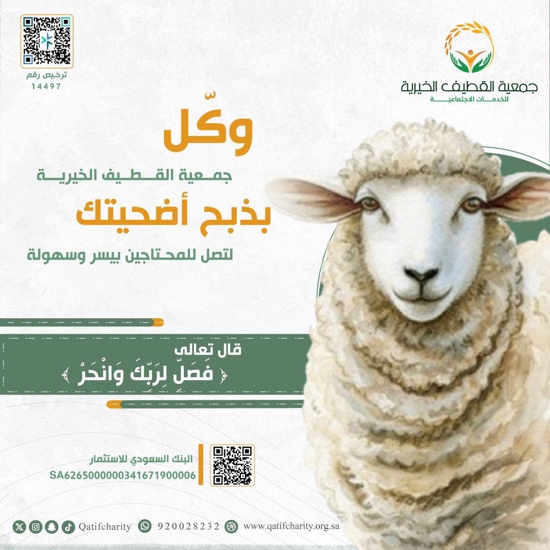 بدءًا من 10 ريالات.. ”قُرُبَات“ خيرية القطيف يفتح باب المشاركة في أجر الأضحية