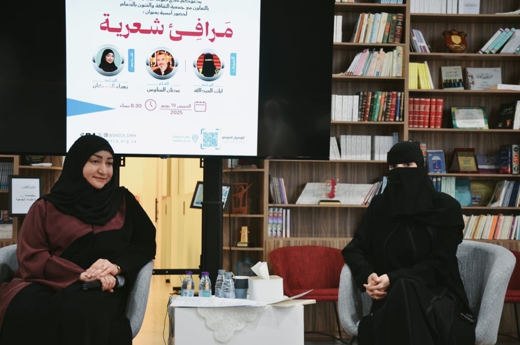 شهدت الأمسية، التي أقيمت مساء الخميس، مشاركة لافتة لكل من الشاعر عدنان المناوس والشاعرة آيات العبدالله، وقدّمتها الشاعرة زهراء الشوكان التي أدارت الحوار بين الضيفين بطرح أسئلة عن تجربتهما الأدبية ومساراتهما الفنية.