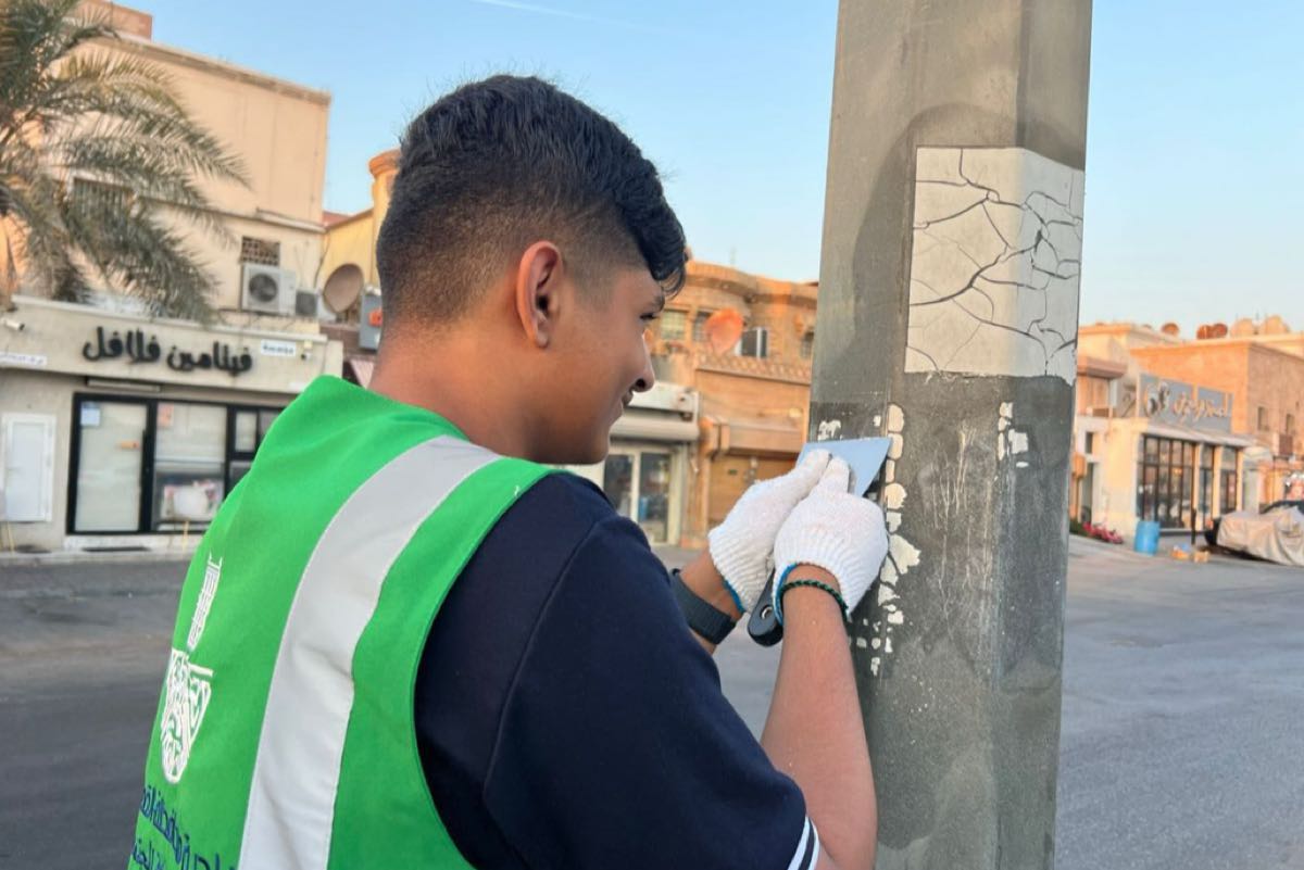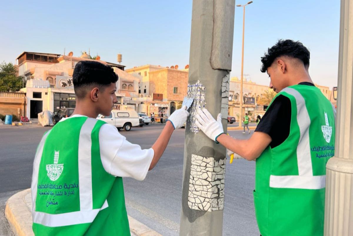 80 متطوعاً يقودون حملة لإزالة 800 ملصق عشوائي بالقطيف