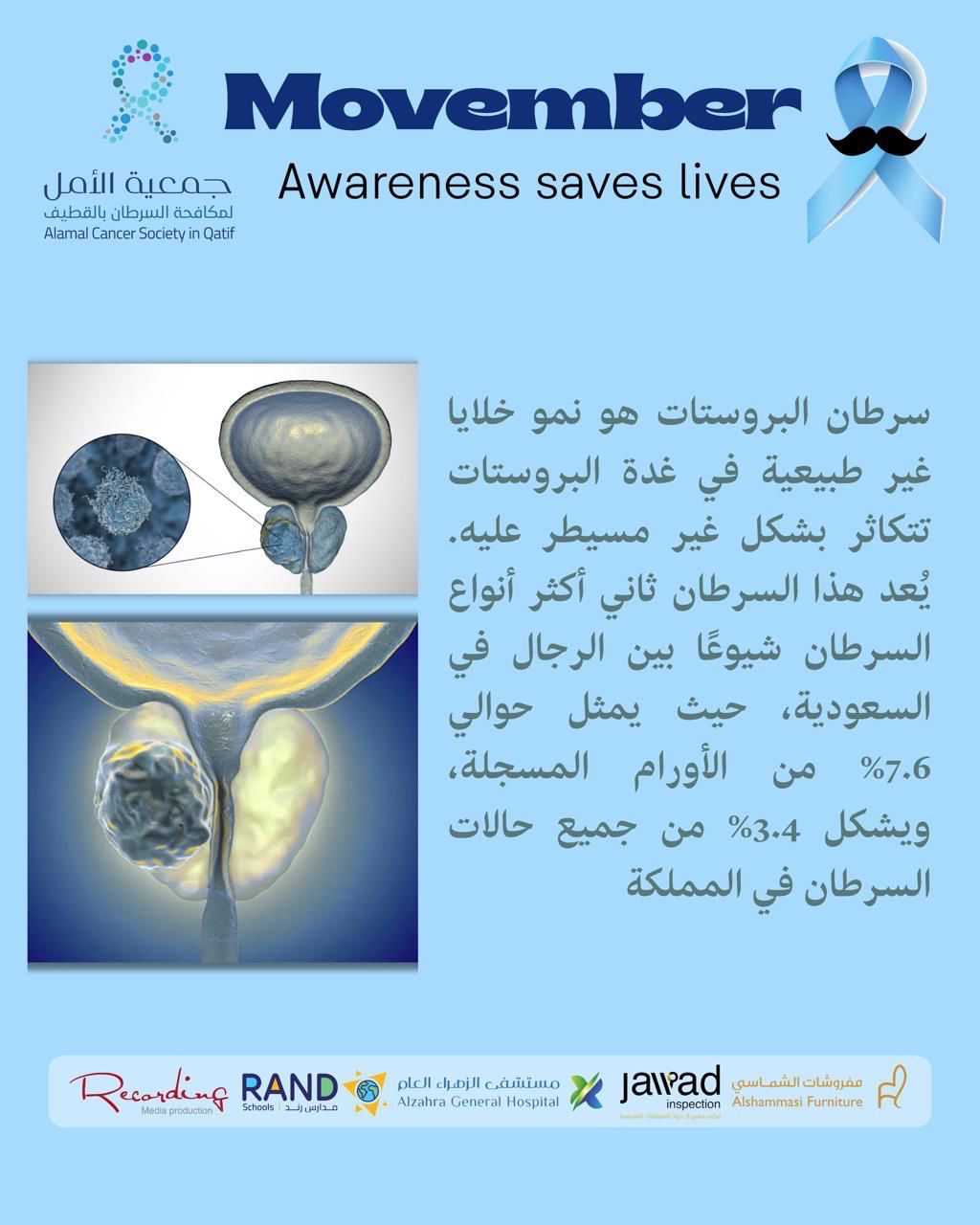 أطلقت جمعية الأمل لمكافحة السرطان بمحافظة القطيف اليوم حملتها التوعوية المكثفة بسرطان البروستات.