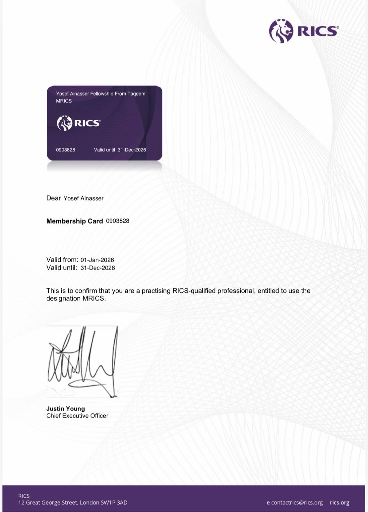 سجّل الخبير والمقيّم يوسف الناصر إنجازاً مهنياً نوعياً بحصوله رسمياً على عضوية المعهد الملكي للمساحين القانونيين ”MRICS“ في بريطانيا، لينضم بذلك إلى قائمة النخبة العالمية في واحدة من أعرق الهيئات المهنية التي تأسست عام 1868 م.