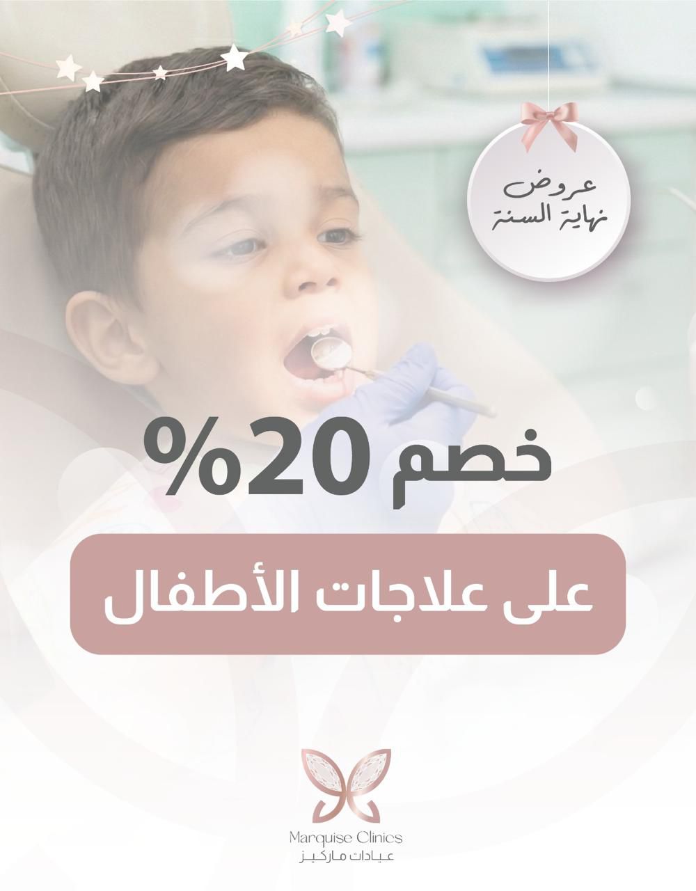مع نهاية السنة، جهّزنا لكم عروض مميّزة في عيادات ماركيز كشف مجاني، تنظيف وتلميع، وتبييض سريري بسعر خاص، إضافة لخصومات على التقويم وعلاجات الأطفال.