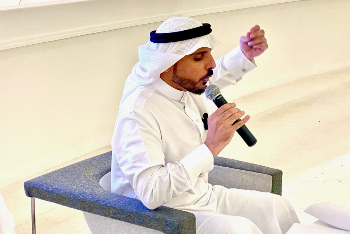 وصدح الشاعر محمد أبو عبدالله في الفضاء الثقافي لـ ”إثراء“ بقصائد نوعية، مفتتحاً مشاركته بنص ”هنّ أمّ اللغات“ الذي وصف فيه العربية بأنها أصل الدلالة وذاكرة الكون الحيّة.