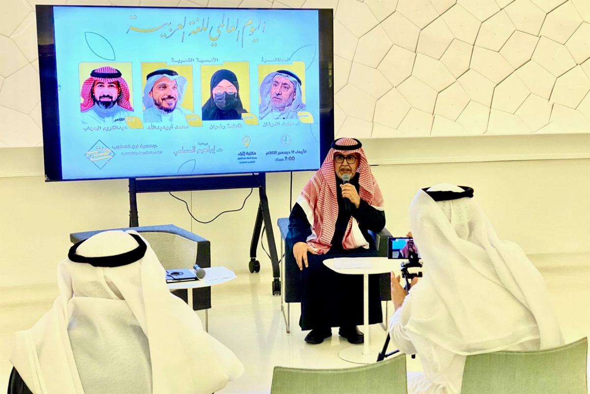 نظمت جمعية ابن المقرب للتنمية الأدبية والثقافية أمسية لغوية وشعرية نوعية في مكتبة ”إثراء“ بمركز الملك عبدالعزيز الثقافي العالمي، احتفاءً باليوم العالمي للغة العربية.