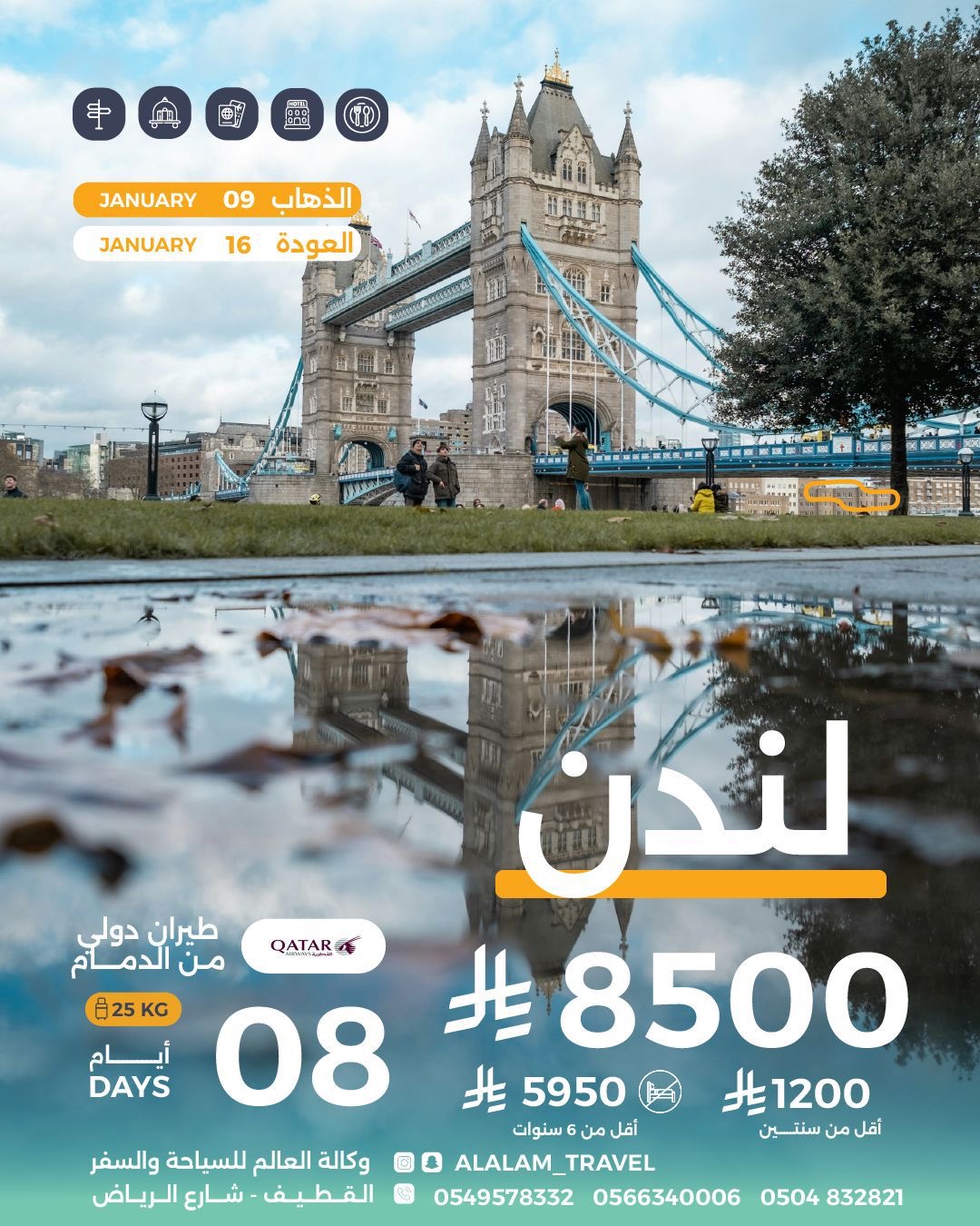 🇬🇧 لندن 8 ايام يوم 8500 ريال