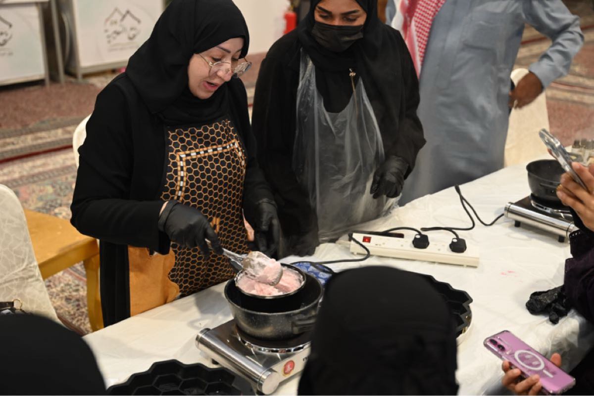 جاء ذلك خلال قيادتها لورشة ”صناعة الصابون من شمع العسل“ التي نظمها مكتب وزارة البيئة والمياه والزراعة بمحافظة النعيرية، ضمن فعاليات مهرجان الربيع 2026، وسط حضور تفاعلي لافت.