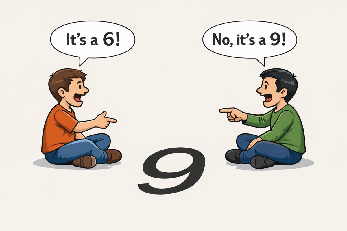 أولًا: بعضُ الأمور نُحسِبها فقط بين زاويتَي الصواب والخطأ، لكن لعل بعضهم يقرأها من زاويته وخلفيّته الفكرية؛ كمن ينظر إلى رقم «6» بالإنجليزية من جهةٍ فيراه «6»، ومن الجهة المقابلة يراه آخر «9»، هذا فضلًا عن أنّ بعض القضايا قد تقع بين زاويتي «صحيح» و«أصحّ منه».