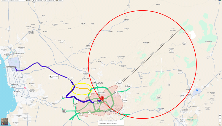 - مسار قطار الحرمين «اللون الأصفر»: يحاذي ميقات الجحفة.