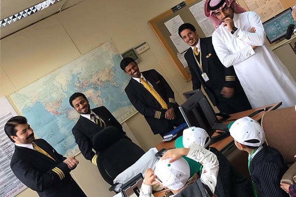 وشرح للأطفال مسؤول فريق العلاقات العامة والإعلام التابع للهيئة الملكية للطيران محمد أبوفور، كيفية تزويد الطائرة بالوقود وعرّفهم على غرفة الملاحين، وإجراءات السفر.